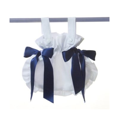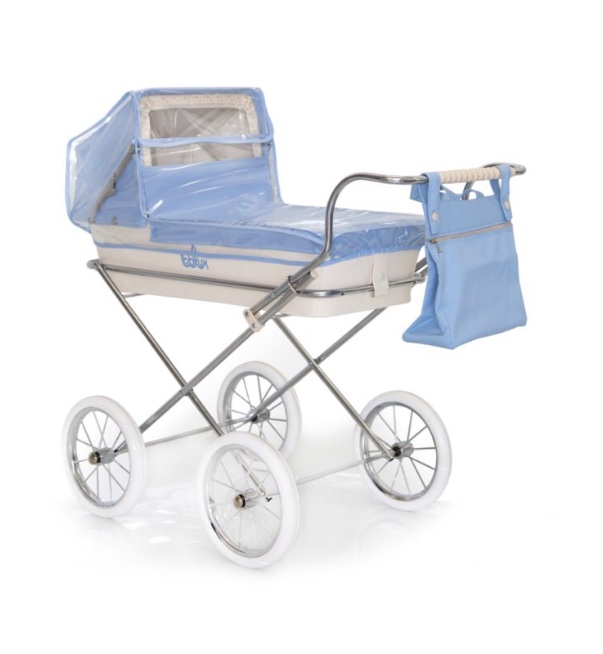 Colour bordered rain cover for small pram.